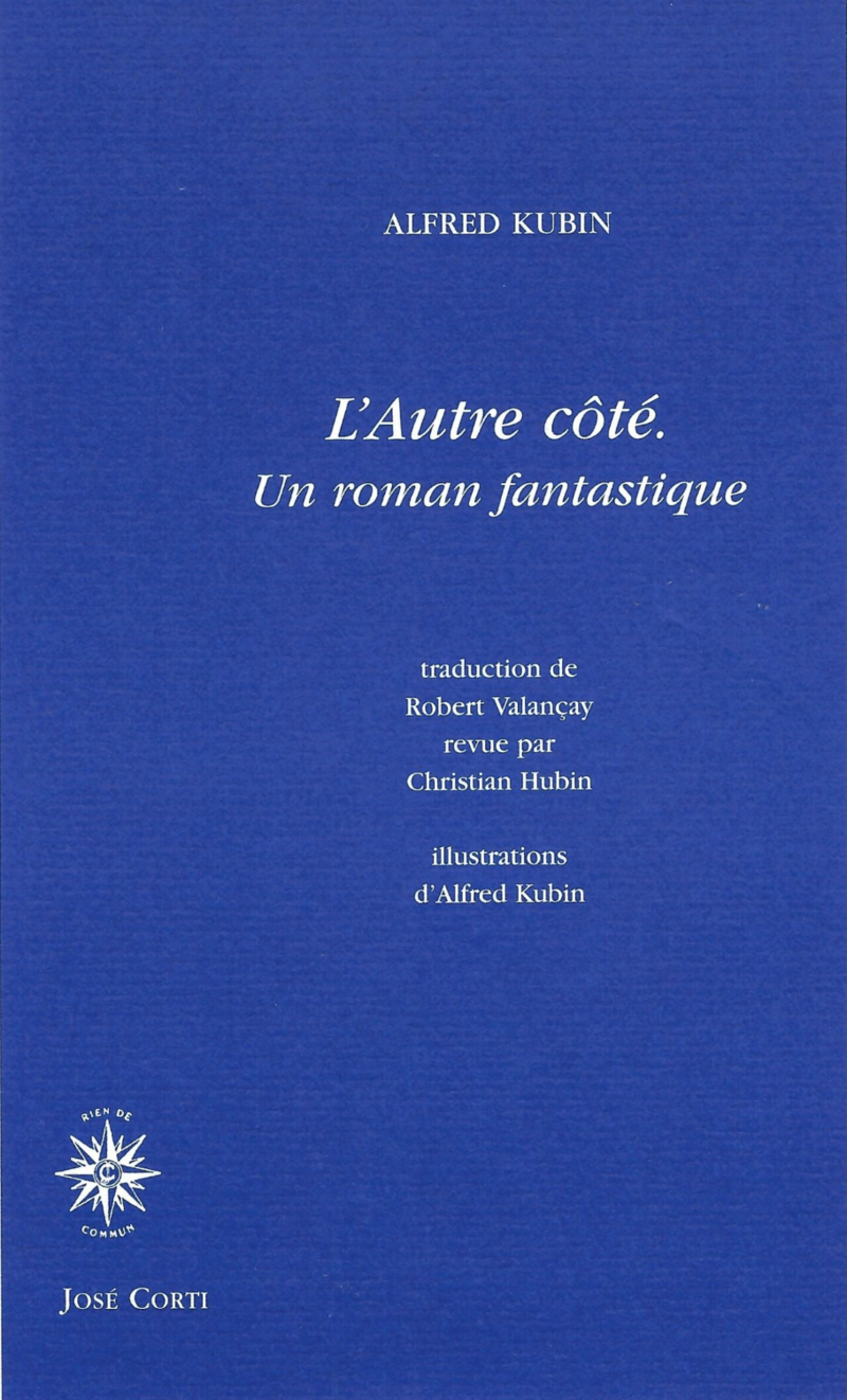 Comme pour certains grands créateurs, un média ne suffit pas à Kubin : d’une main, il peint, de l’autre, il écrit. Son seul roman, L’Autre côté, qu’Herman Hesse, déjà, considérait comme un livre majeur, est devenu, depuis sa partition en 1909, une des œuvres-clés de la littérature dite moderne. L’Autre Côté a influencé Kafka, Jünger et les surréalistes, de même que le groupe du Cavalier Bleu auquel Kubin appartenait. Comme la plupart des livres qui comptent, L’Autre Côté, son Empire du rêve – tel un avatar angoissant des confins – ne se résume pas. Théâtre de fantasmagories échevelées, de métamorphoses hallucinées et de décompositions de toutes sortes, L’Autre Côté est le contrepoint même du rêve. Tout est rêve tant que tout demeure en deçà des frontières de l’Empire éponyme : le voyage, la quête, la lumière au-delà, c’est-à-dire au-dedans, la cauchemar éveillé ciel lourd, resserrement, prémonition, jusqu’à la lente dégradation mortifère. Voici donc une parodie de l’utopie, du voyage extraordinaire, et du merveilleux ! Depuis l’édition de Pauvert, de 1964, ce livre manquait. Le texte, suivi de « Quelques souvenirs de ma vie », autobiographie subjective de Kubin, et d’une lecture du libraire Laurent Évrard est, bien sûr, illustré par Kubin, lui-même.