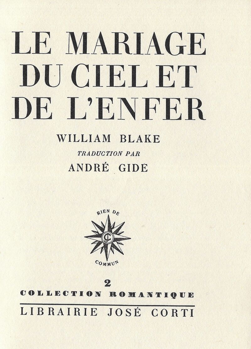 Le temps a rendu justice à celui qui, longtemps considéré comme un fou, fut l’immense poète, graveur et visionnaire que l’on sait – éternel enfant, éternel « primitif » que son ardeur imaginative, son lyrisme, sa violence condamnèrent à n’avoir de renommée que posthume. Autodidacte, il dénonce la raison tyrannique des philosophes, s’enflamme pour la révolution. Ses admirations sont aussi significatives que ses refus. Il préfigure quelques-unes des lignes de force du romantisme et goûte certains de ses grands intercesseurs, Swedenborg, Shakespeare, Dürer. Une vie intérieure puissante, une simplicité mystérieuse et désarmante guide son bras. Dans Le Mariage du Ciel et de l’Enfer, il proclame l’unité humaine, attaque la prudence et le calcul au nom de l’épanouissement de l’être réconciliant désir, sagesse et raison. L’amour comme la haine étant nécessaires à la vie, c’est le choc des contraires qui provoque le surgissement de la force créatrice et la progression de l’être individuel. Il oppose ainsi la raison à la vision intuitive, à laquelle va sa préférence.